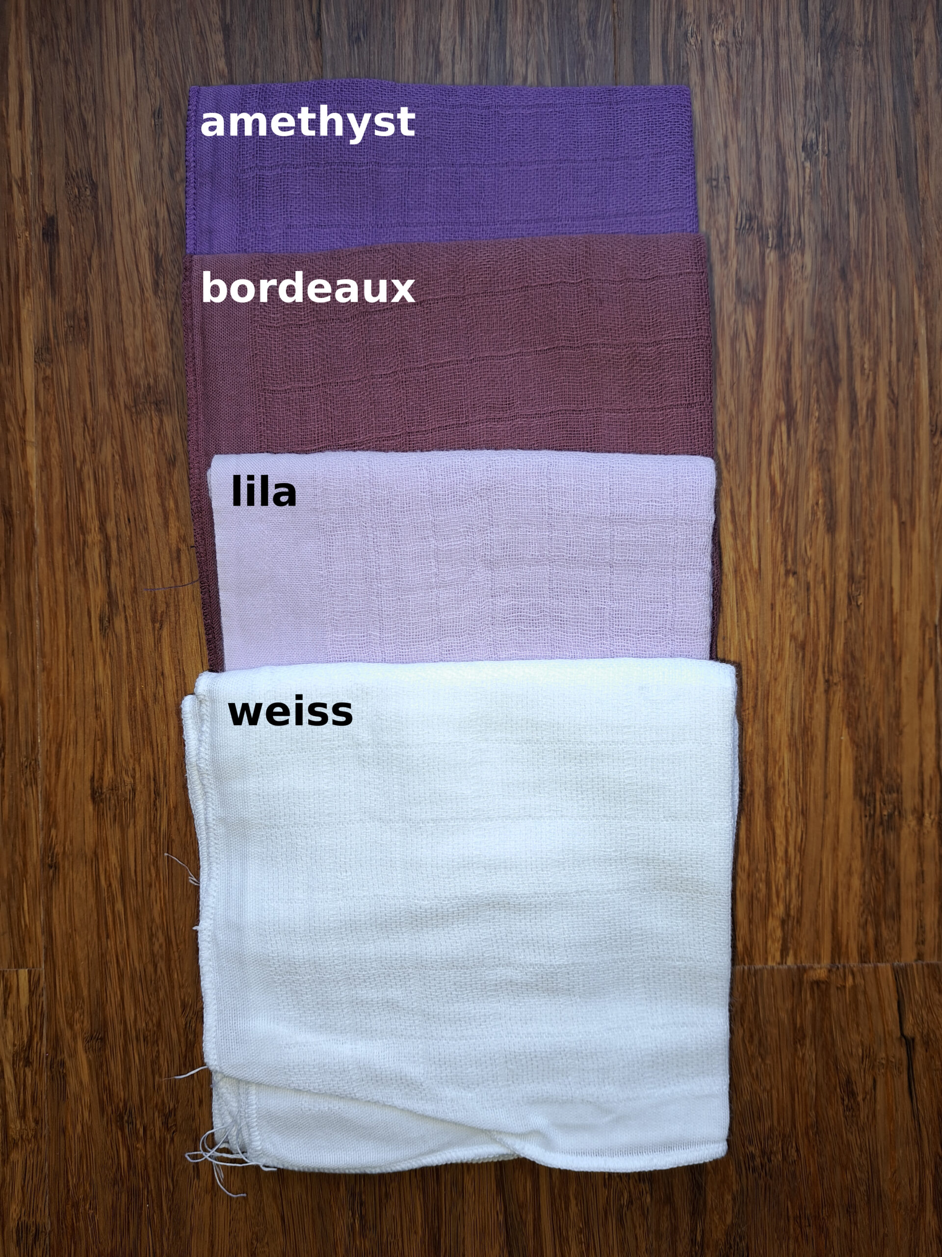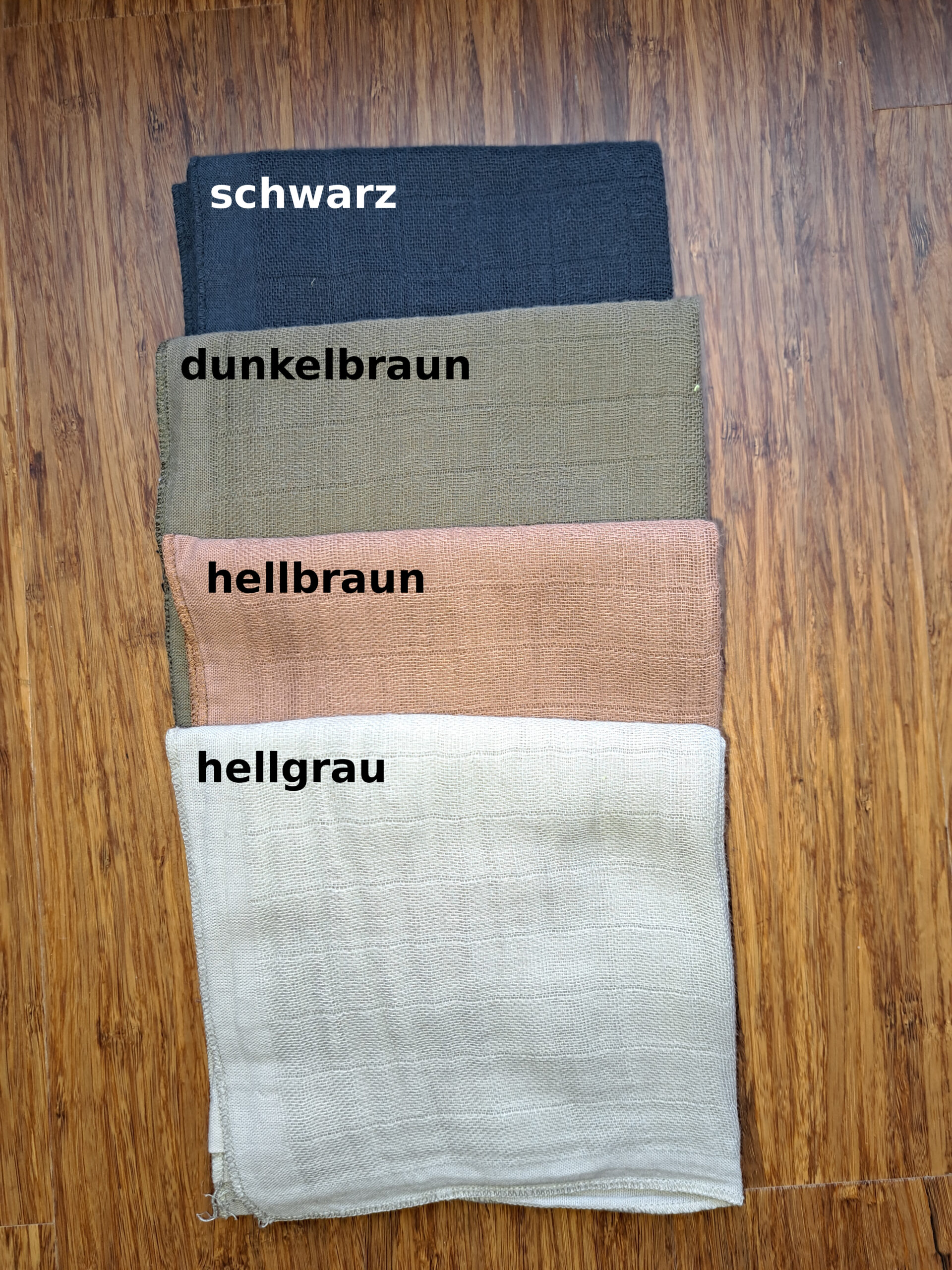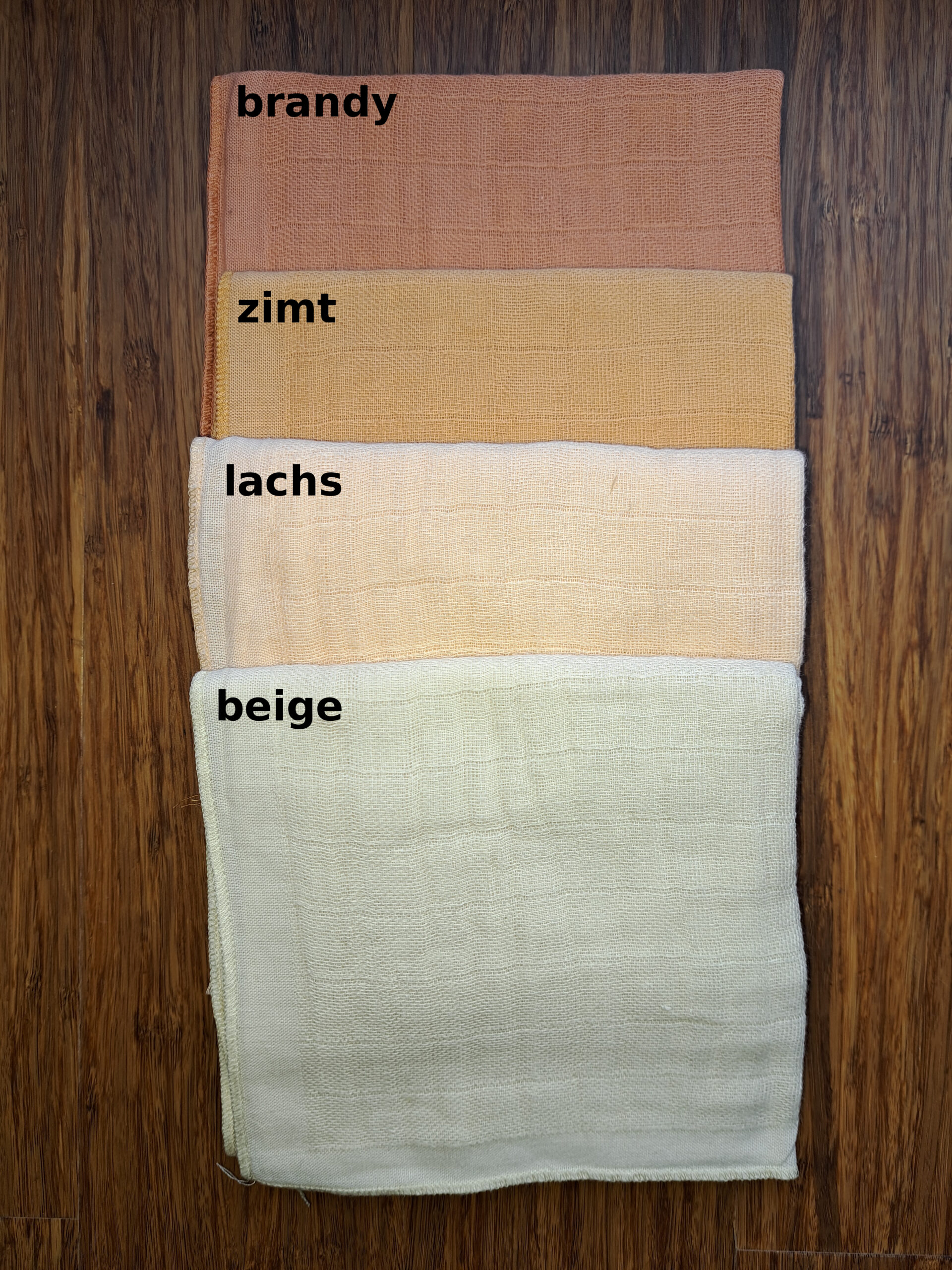 Unsere Nuscheli in der Größe 60×60 cm gibt es in vielen verschiedenen Farben. Die effektive Größe kann etwas abweichen. Die Nuscheli sind doppelt gewoben und bestehen aus 100 % reiner Baumwolle. Drei Seiten des Nuscheli sind gesäumt, eine Seite ist eine Webkante. Die Nuscheli sind bei 60 Grad waschbar.